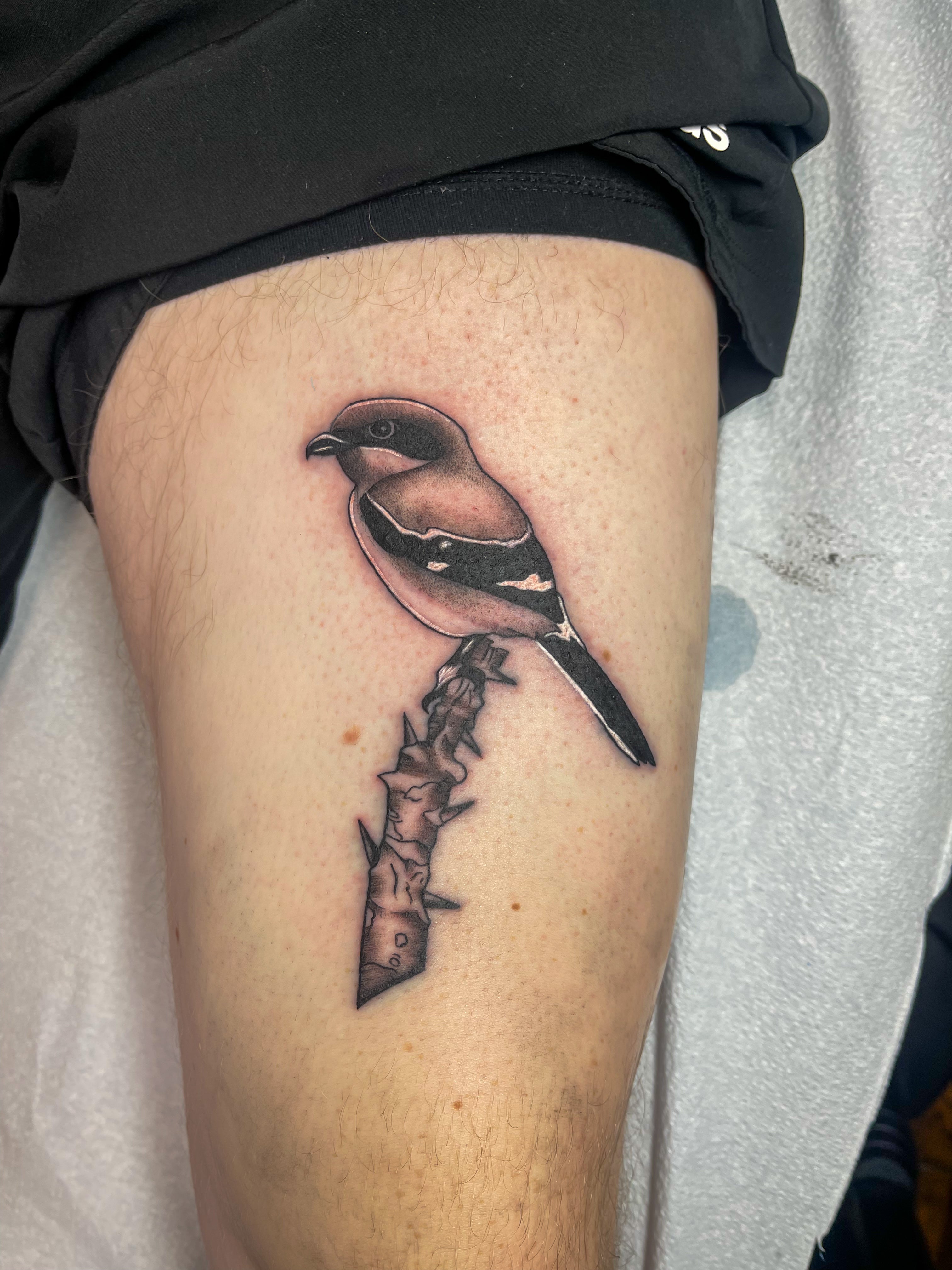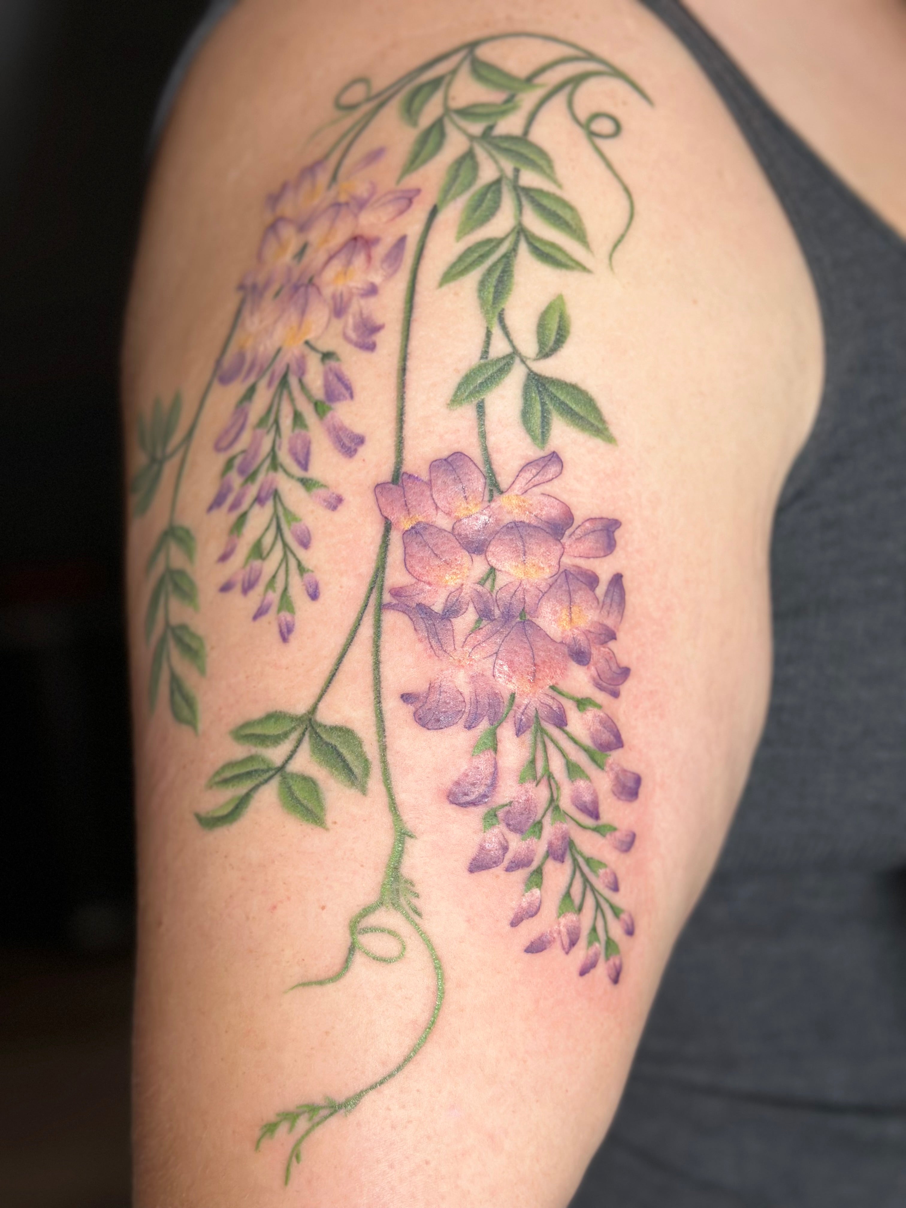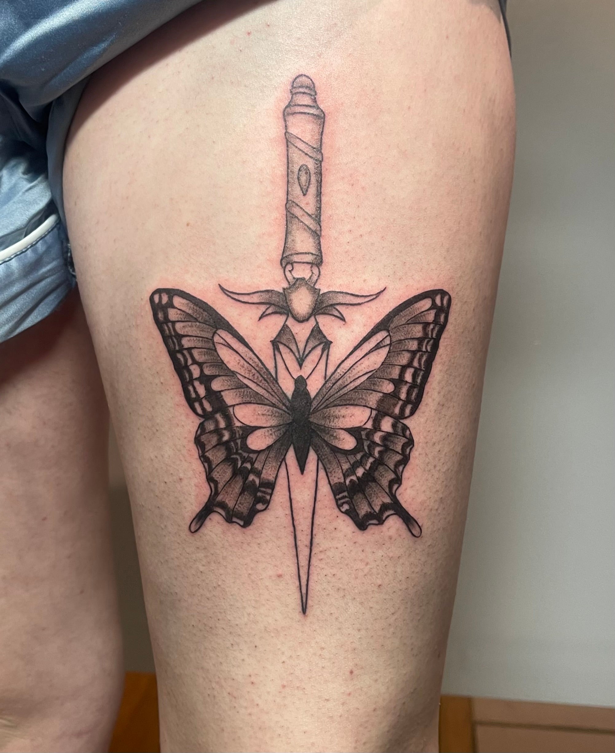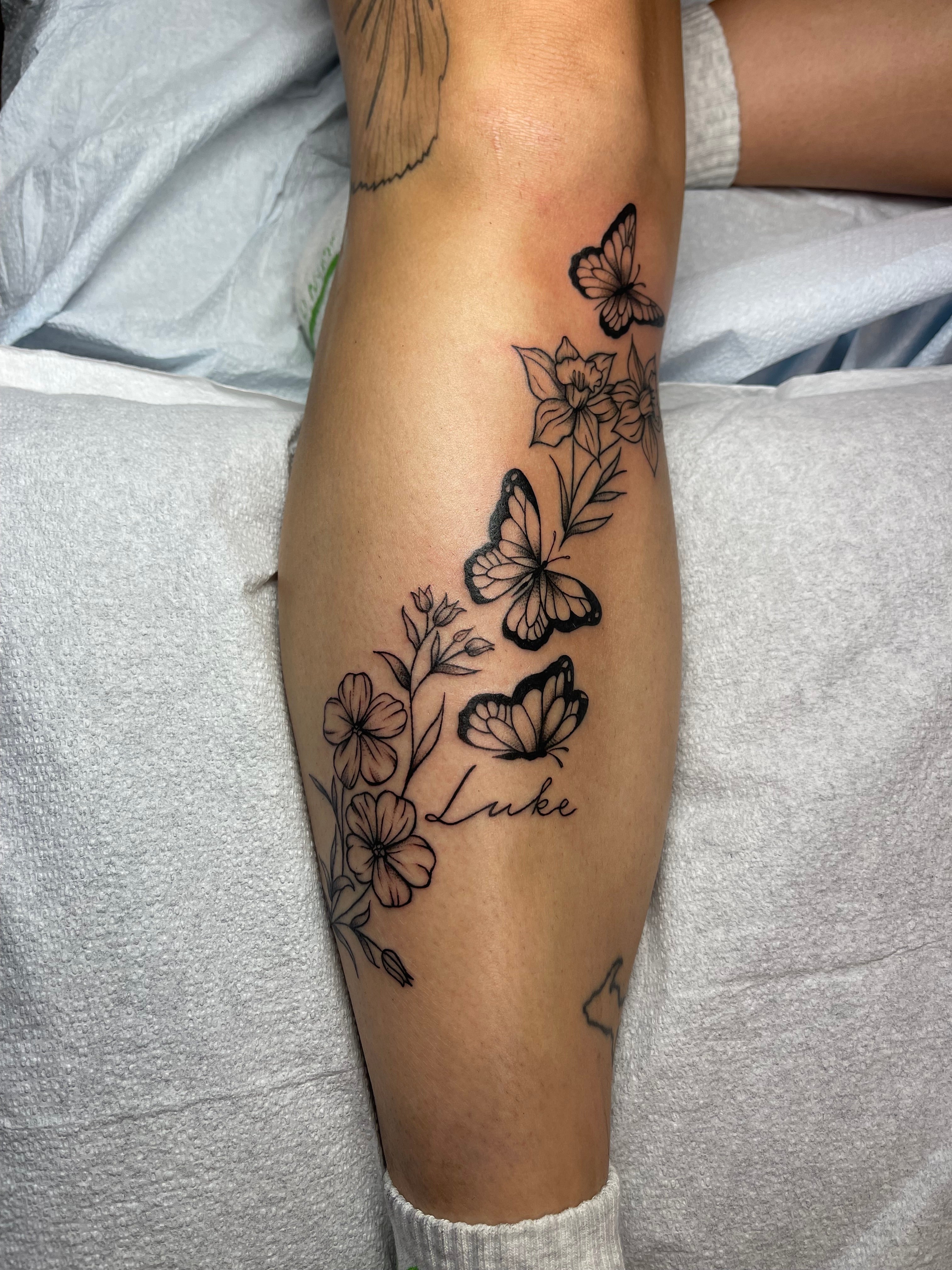Her artistic style is beautifully versatile, from delicate florals and fine line work to bold traditional designs and abstract elements. She enjoys working in both black and grey and color, always eager to try something new and craft tattoos that are as unique as the people who wear them.